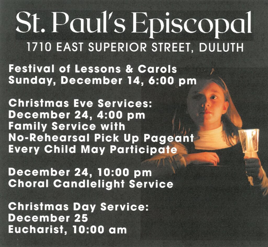 For more information, please contact Maggie at rector@stpaulsduluth.org.